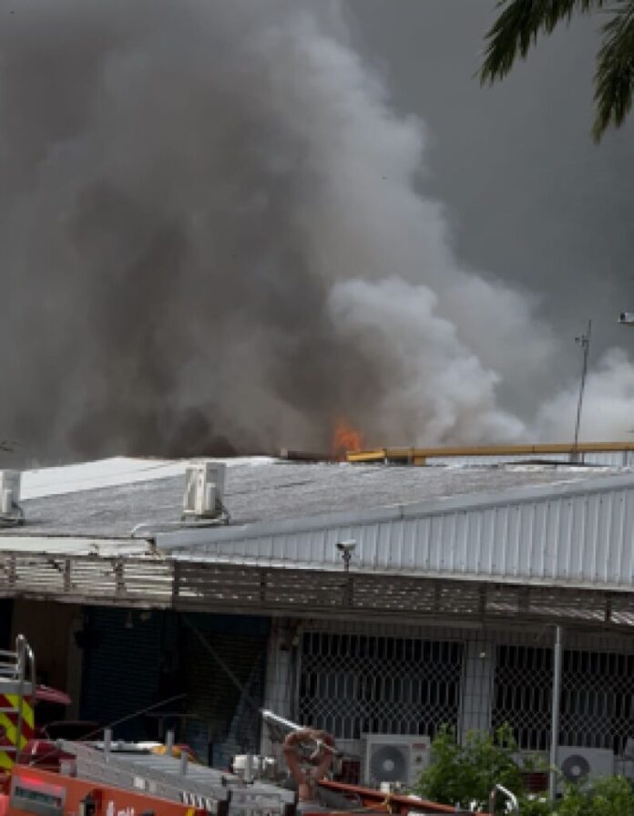 台東卑南鐵皮火警現場冒出濃煙及火舌。翻攝畫面