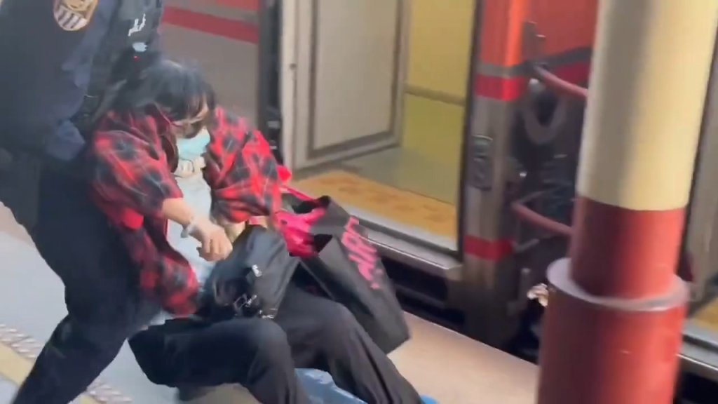 14日大鬧台鐵145次新自強號的女乘客,被警抬下車時大喊救命引發熱議,今(15)日疑似又在台鐵176次車上大鬧,在新竹站被警察抬下車。