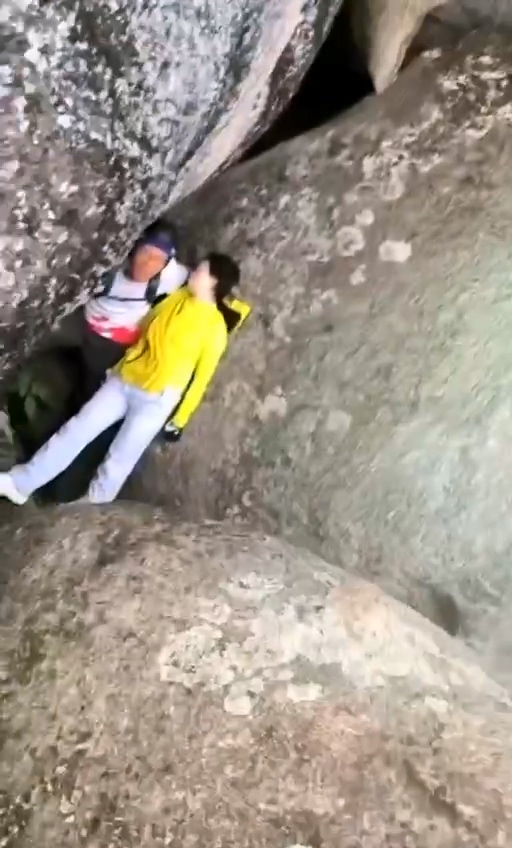 根據陸媒報導,11月16日,目擊者在江西磊子石岩石疊嶂遇到一對遊客爬山,其中一名女子在石頭上跳躍,大喊「我來個跳的」後後仰摔落。