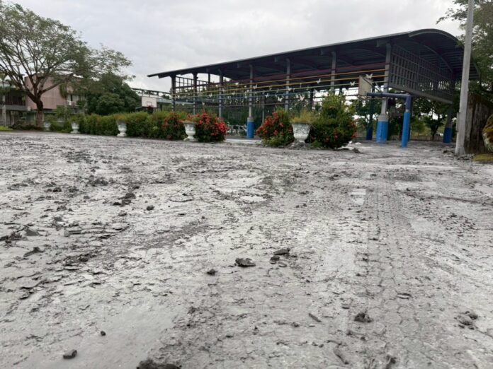 受到風災、洪災影響,泥水經萬榮國中南側圍牆縫隙流進校園,造成活動中心右側區域至校門口間地坪泥沙嚴重淤積,影響校園動線及安全。縣府教育處立即啟動緊急應變措施,除第一時間確認學校師生安全外,並時刻關注災情現況。