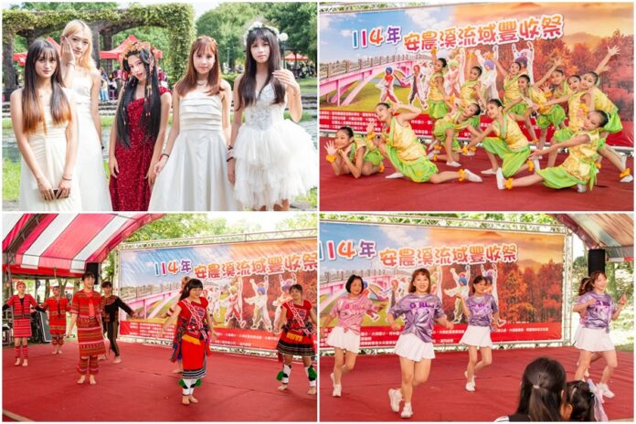 聖母醫專學生、蘭陽舞蹈團及社區媽媽在安農溪豐收祭精彩的表演。(圖/聖母醫專)