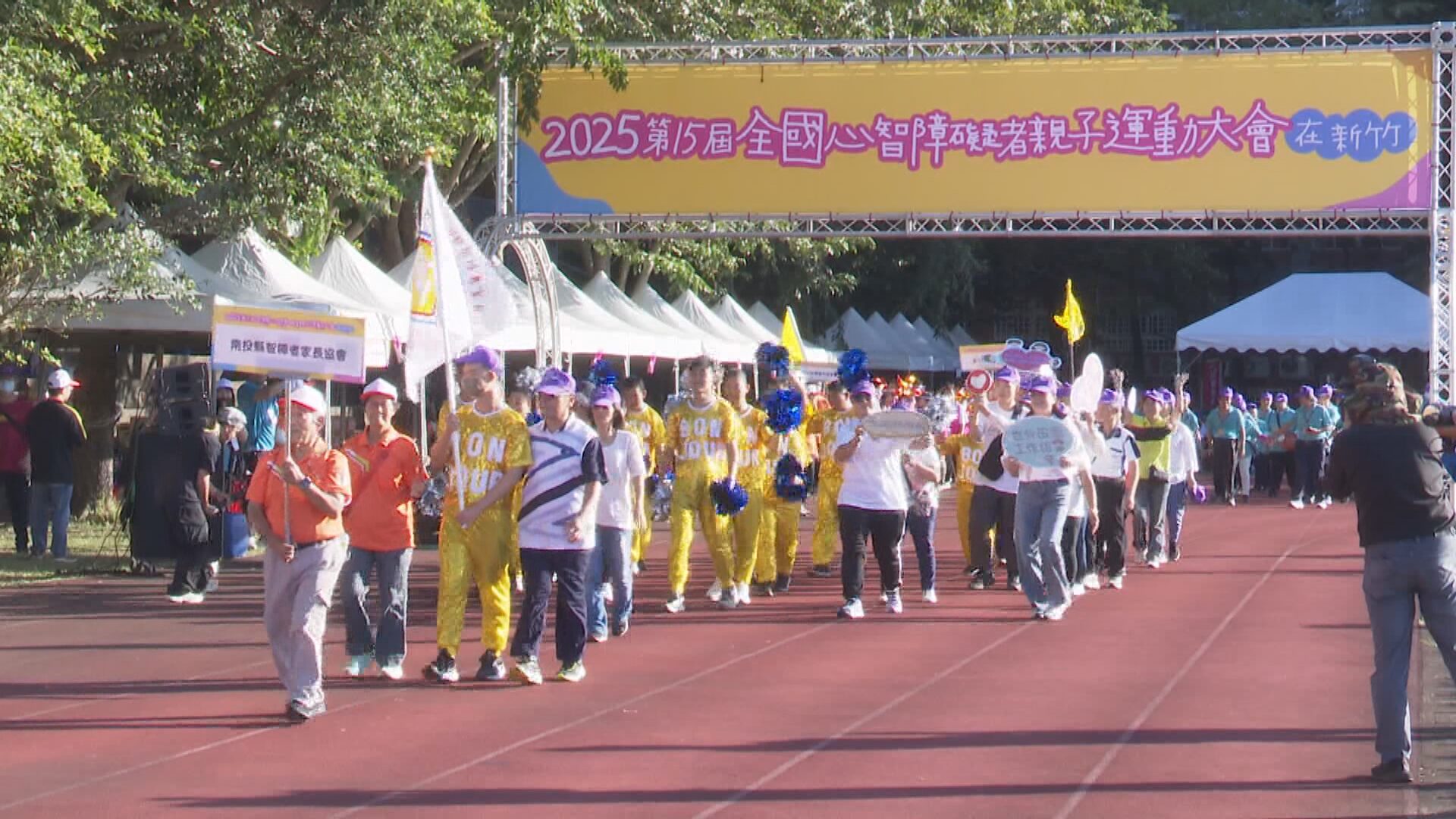 2年一次的全國心智障礙者親子運動大會睽違18年後,今年再度回到新竹市舉辦,吸引22個縣市、29支隊伍,2500位親子共同參與,運動會進場各單位展現活力,並以「勇敢嘗試、爭取勝利」的精神參與兩天的賽事。
