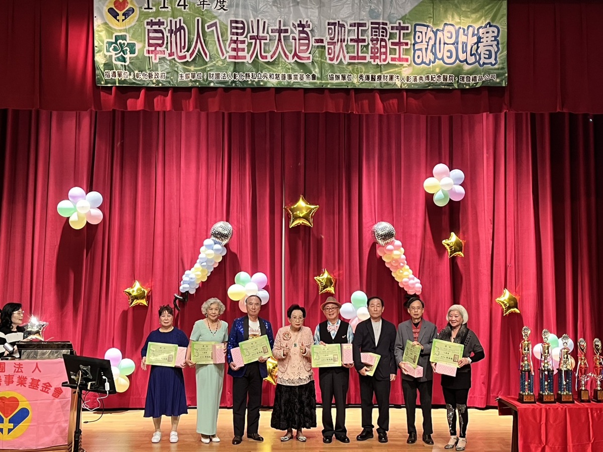 由秀和慈善基金會主辦、彰化縣政府指導的年度盛事「草地人星光大道—歌王霸主」長青歌唱比賽,今(11/19)日在彰濱秀傳國際會議廳熱鬧登場。精彩賽事再度吸引設籍彰化縣、年滿65歲以上的銀髮族熱烈響應,共有60位長者報名參加,在經過激烈的初賽後,選出15位選手進入決賽。
