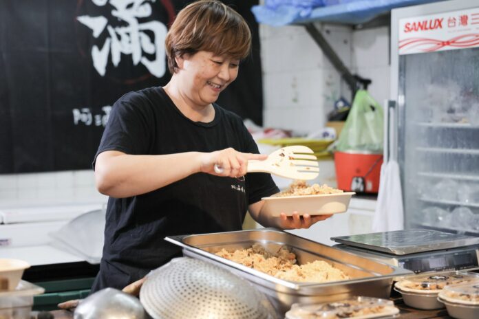 ▲本次票選活動前十強之一的金山區金山市場阿滿姨油飯蘿蔔糕老闆娘與好吃的油飯。(圖/新北市市場處 提供)