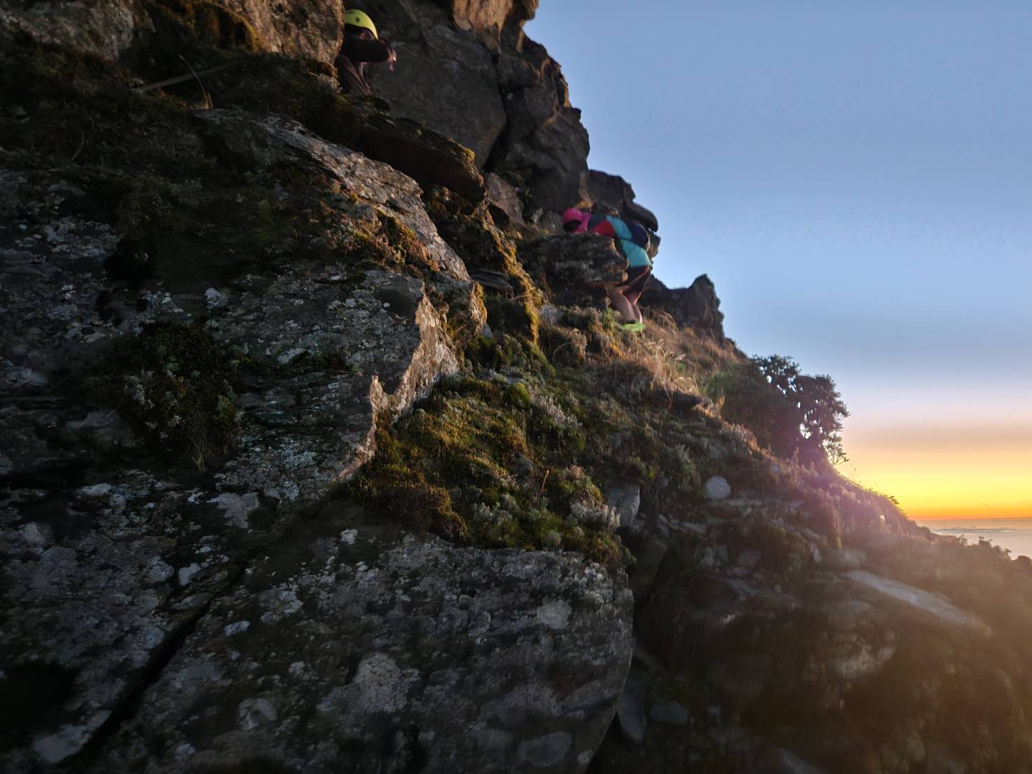▲女山友受困岩壁,登山成了命懸一線。(圖/高市消防局提供,下同)