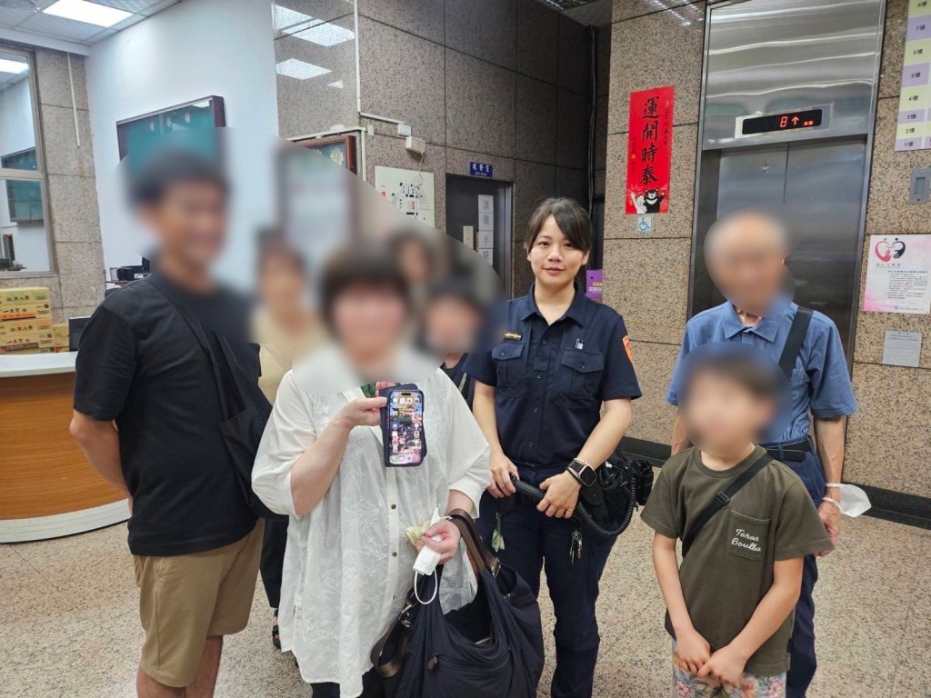來自日本大阪的70歲永井女士一家人來台旅遊,卻在高雄捷運美麗島站轉乘時不慎遺失手機,讓原本愉快的行程瞬間陷入混亂,家人沿途焦急尋找仍遍尋不著,正感到無助時,抬頭看到美麗島站3號出口的「Police」標誌,立刻前往新興分局中山路派出所求助。