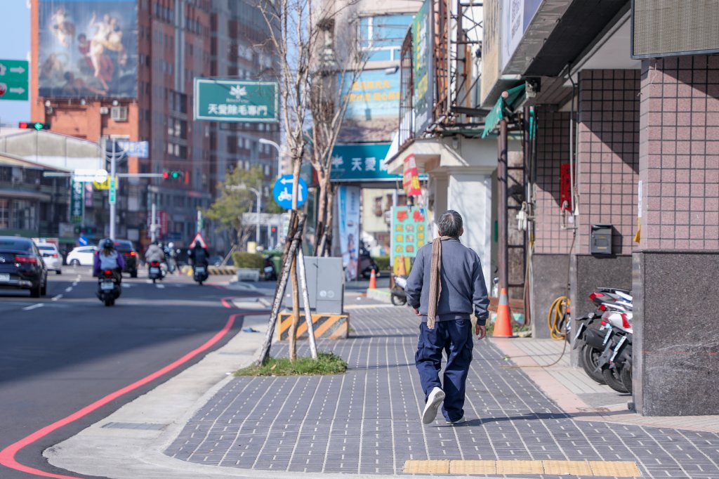 市府暖心規劃讓大家安心漫步,體驗行人友善帶來的便利與舒適(圖/臺中市政府建設局提供)