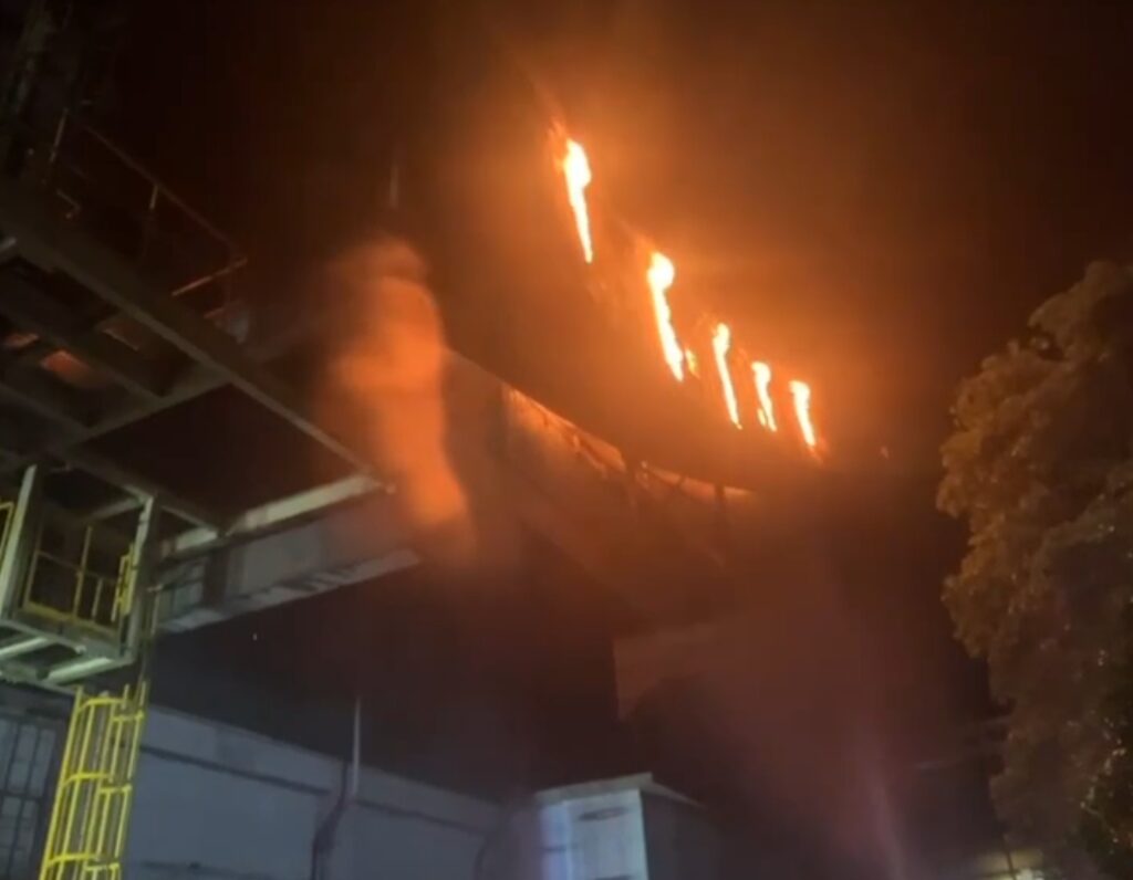 消防隊員到場回報輸送帶起火燃燒(樓高約10層樓)及輸送帶旁有木屑堆起火燃燒,因輸送帶介於再生粒料儲存倉及預熱機建築物兩棟之間,且高度較高搶救不易,隊員佈線搶救並配合雲梯車協助滅火。凌晨3時勢控制,4時06分火勢撲滅,持續對木料進行殘火處理,燃燒面積約50平方公尺,起火原因待火災調查科釐清。