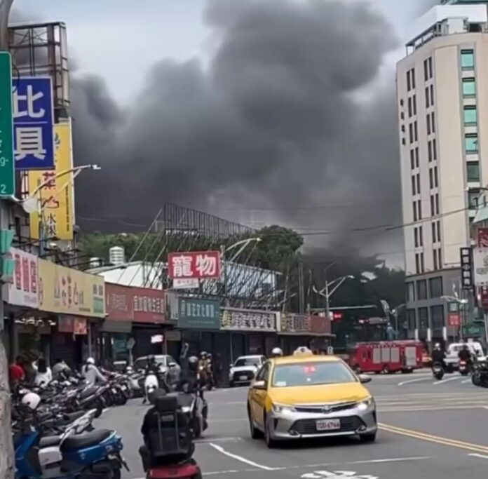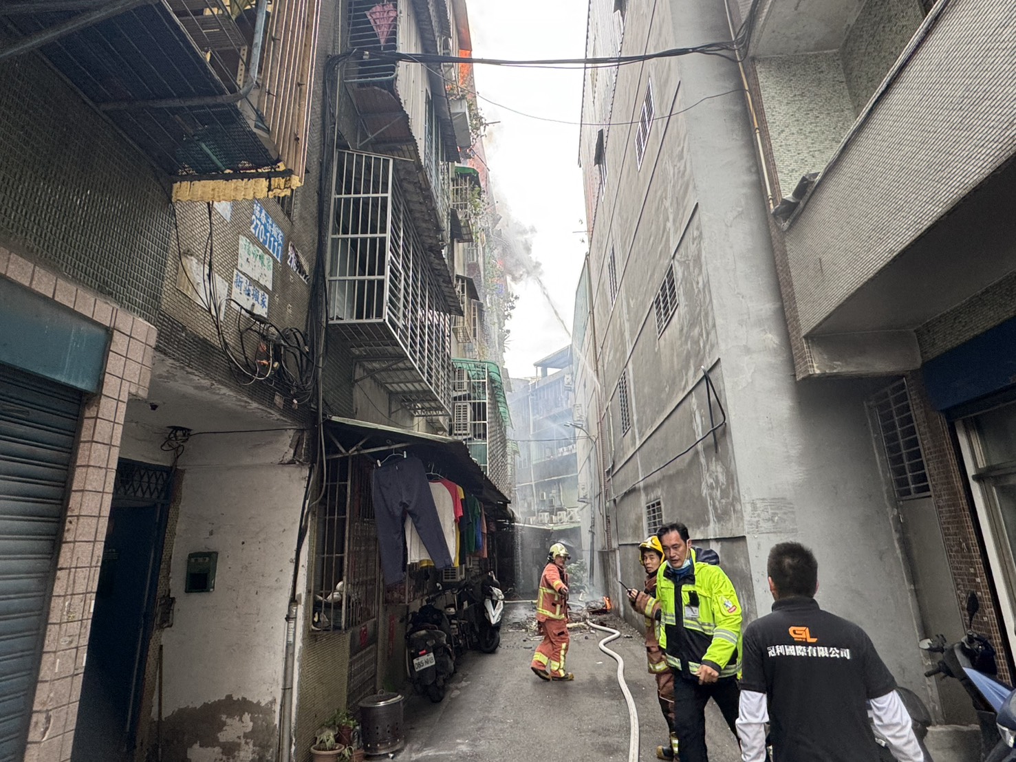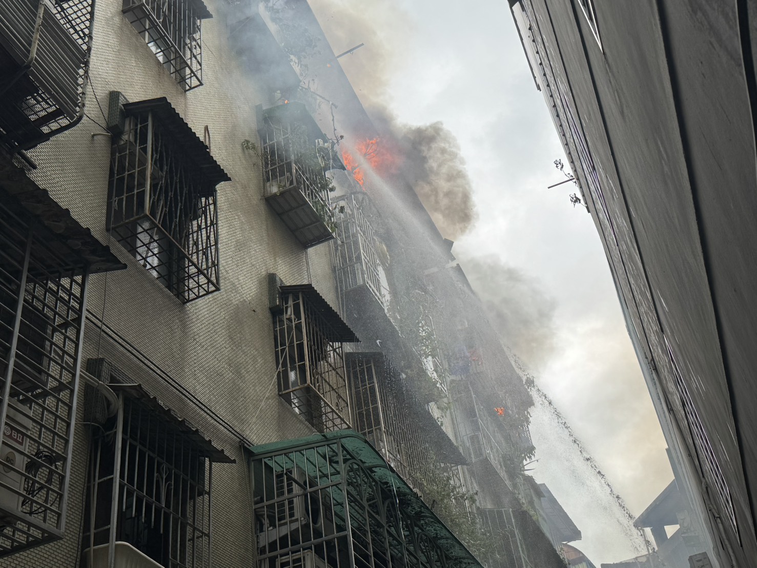 現場火煙冒出消防隊員灌救。翻攝畫面