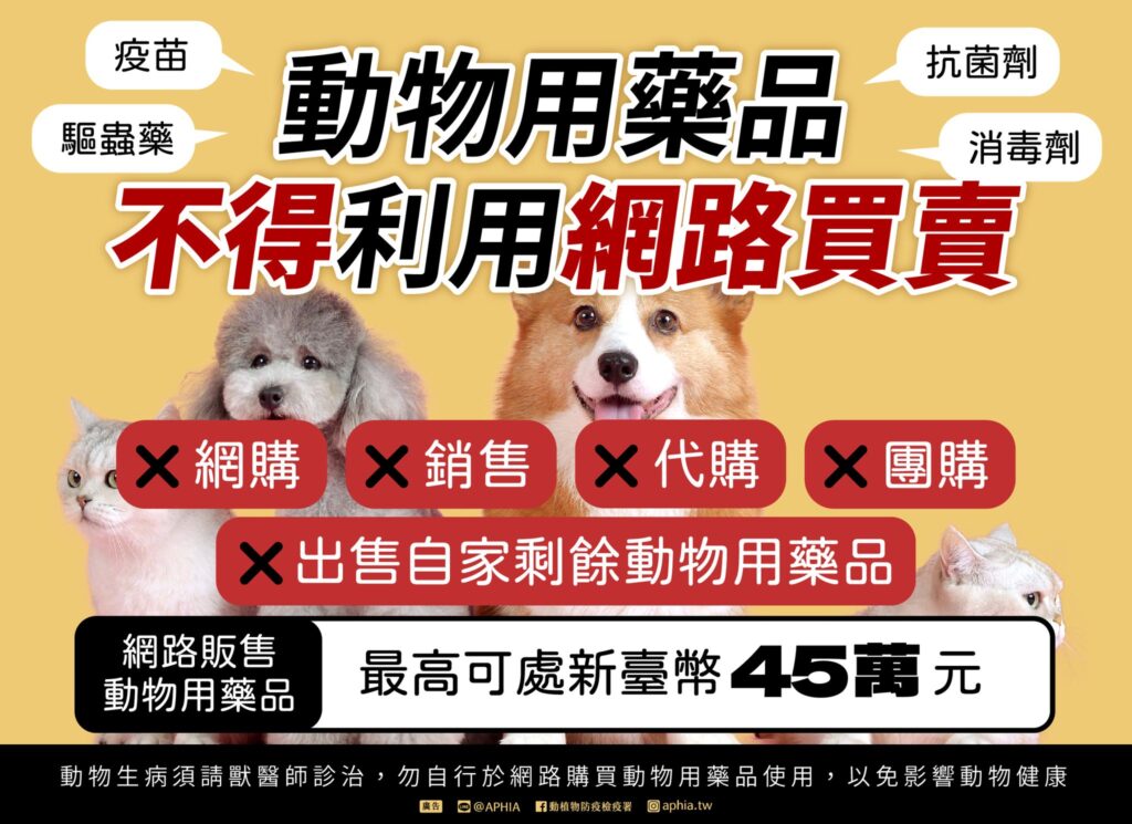 此外,動物用處方藥品之販售,應依「獸醫師(佐)處方藥品販賣及使用管理辦法」辦理。除動物用藥品製造或販賣業者之批發、輸出入,以及獸醫診療機構、學術機構及動物防疫機關購買外,其他情形非經執業獸醫師(佐)開立處方,不得為買賣行為。