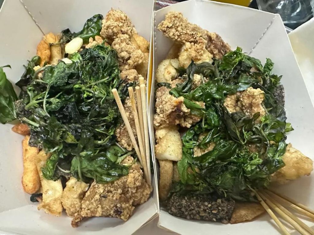 還有民眾好奇菜單中的「蛋餅皮」是什麼,立刻有內行人解惑:「南部鹹酥雞攤都有,炸得脆脆的,有蔥花,非常好吃。」