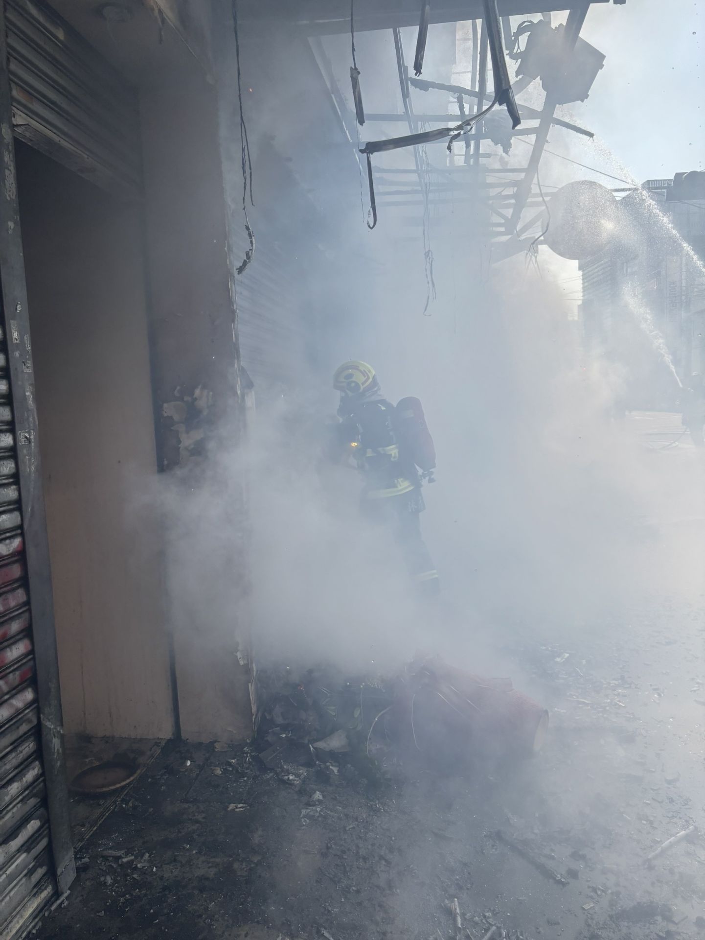 台中市消防局表示,11時8分接報後立即出動8個單位、18輛消防車、38名人員前往。起火建物為5層樓,大量濃煙從店面竄出。消防隊迅速佈線壓制,於11時29分控制火勢,11時38分撲滅。
