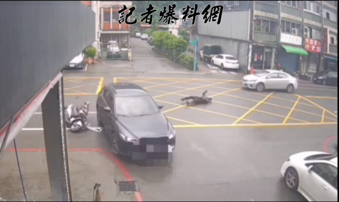 監視器影片曝光,胡姓騎士雖然緊急煞車,但在即將撞上轎車的一刻,他當機立斷放掉機車,整個人往左側閃避,朝轎車車尾後方噴飛,摔倒在地滑行了幾公尺後,胡男竟馬上站起身來,拍拍身上的髒污,走向事故地點。雖然警方記錄胡男手腳有輕微擦挫傷,但以如此猛烈的撞擊程度來看,閃避技巧令人稱奇。