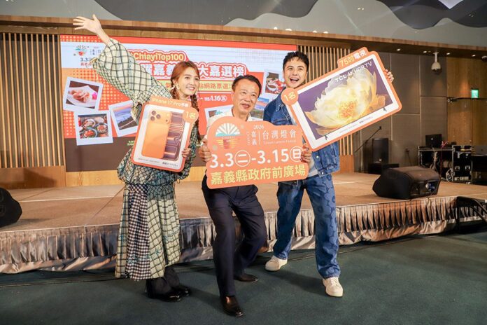 嘉義縣政府舉辦「光躍嘉義‧百大嘉選榜」票選活動,邀請民眾選出最代表嘉義縣的美食及景點。24日在宣傳記者會中,邀請全縣18鄉鎮店家展示自家招牌美食,食尚玩家主持人朵拉(Dora)及曾子余也到現場與縣長翁章梁分享嘉義縣的私房景點。翁章梁說,投票除了有機會抽中大獎,還能讓支持的店家登上嘉義縣10大美食及景點,明年3月燈會舉辦時將有全國各地的遊客湧入嘉義,投票結果可以讓遊客更有方向感。