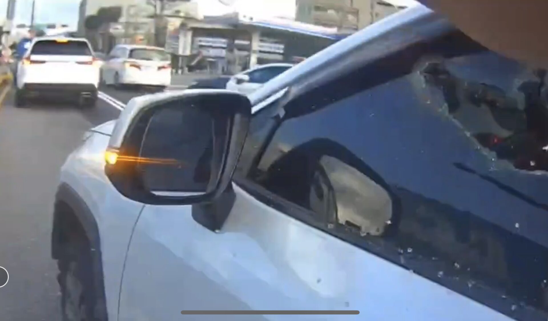眼見許女仍加速試圖衝出包圍,員警果斷開八槍,打爆轎車輪胎,讓車子開不了,再破窗將人強勢拉下車壓制,全程驚險。