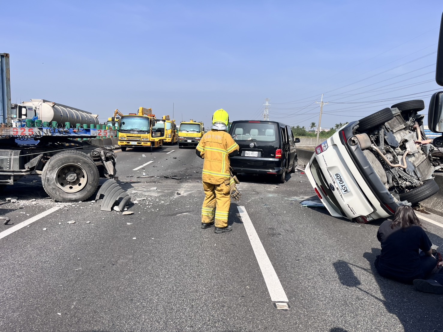 初步了解,北上全線車道目前已進行「全面封閉」管制,南下則維持外側車道可通行,但仍有車流壅塞情況,提醒用路人提前改道,避免久候。目前現場回報約有3人受傷,至於事故詳細狀況、是否有增加人員受傷及車輛移置進度,警方表示仍在處理中,後續將持續更新最新路況資訊。