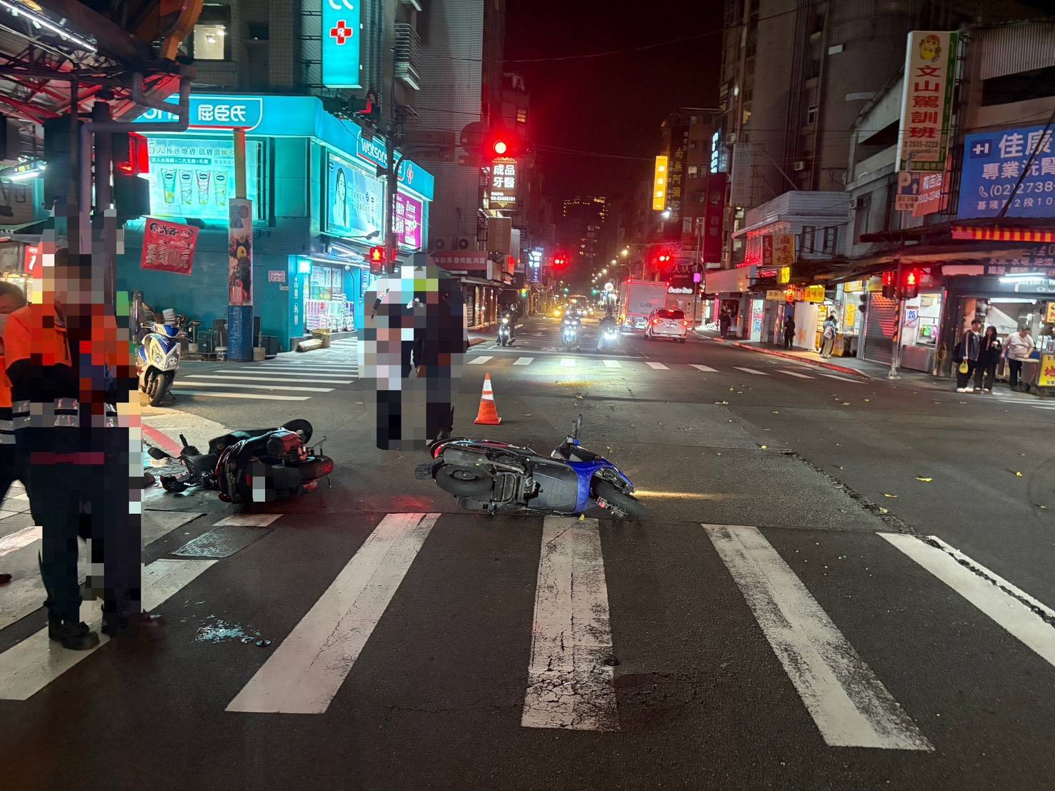 吳興街巷口!重機左轉撞上直行機車 2騎士受傷送醫.(圖/警方提供)