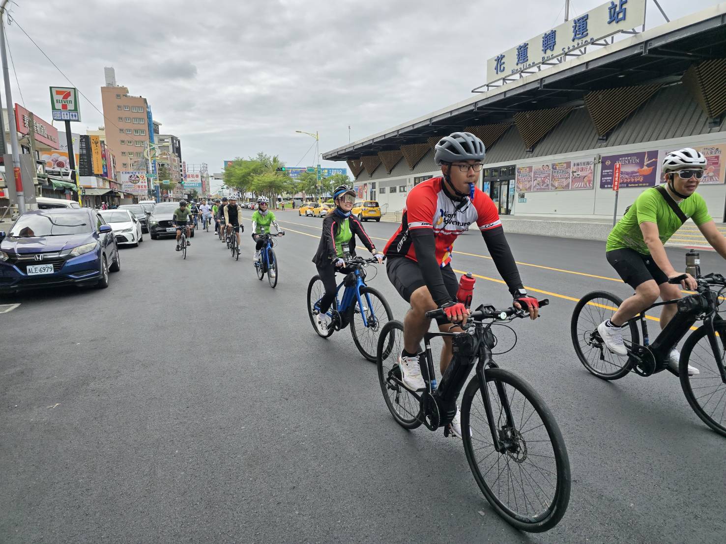 仁寶愛心車隊成員由花蓮火車站騎到展望會花蓮辦公室。(圖∕記者范振和攝)