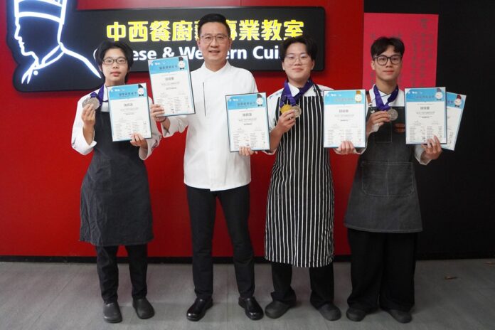 ▲大葉大學餐旅系彭建治老師(右二)帶領學生參加FHC烹飪賽,獲1金4銀1銅。(圖/大葉提供)