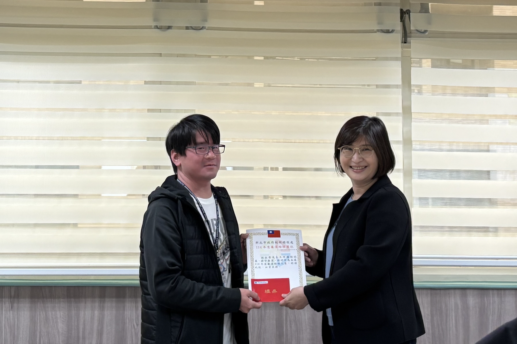 日前新北市政府稅捐稽徵處處長連文娟於處務會議特別公開表揚並頒獎給該處114年獲選廉潔楷模的三位同仁,此次表揚的三位同仁,分別在各自的崗位上展現了廉潔自律、積極為民服務與堅守公務操守而獲得殊榮。