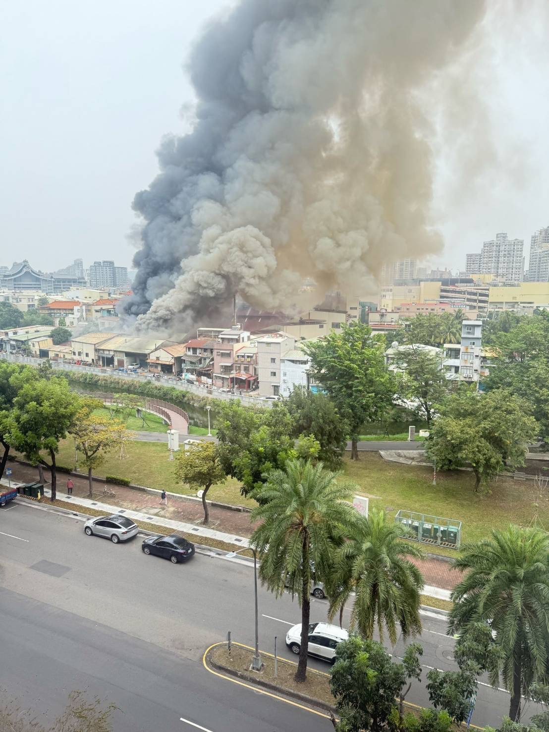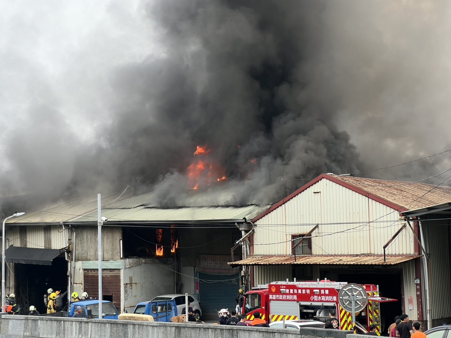 高雄三民區高醫對面的孝順街,今(28)日下午3時許傳出火警,現場竄起大量濃煙,警消出動26車63人前往搶救,到場發現一處鐵皮建築物竄出火煙,裡面堆放鐵製品,正佈線搶救中,暫時回報無人受傷受困。