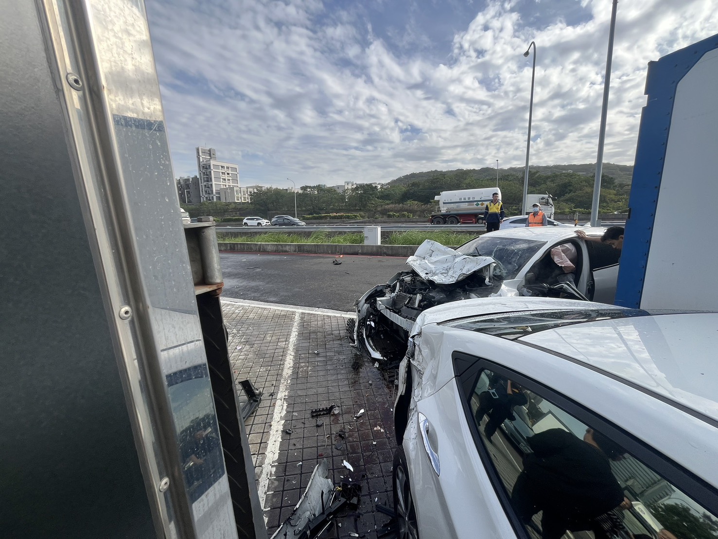 疑開輔助駕駛又分心 楊梅休息站連撞6車釀3傷.(圖/警方提供)