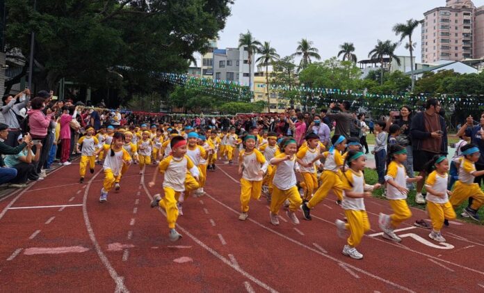 光華幼兒園創舉~百位親子同起跑8分鐘馬拉松。(圖/光華高中提供)