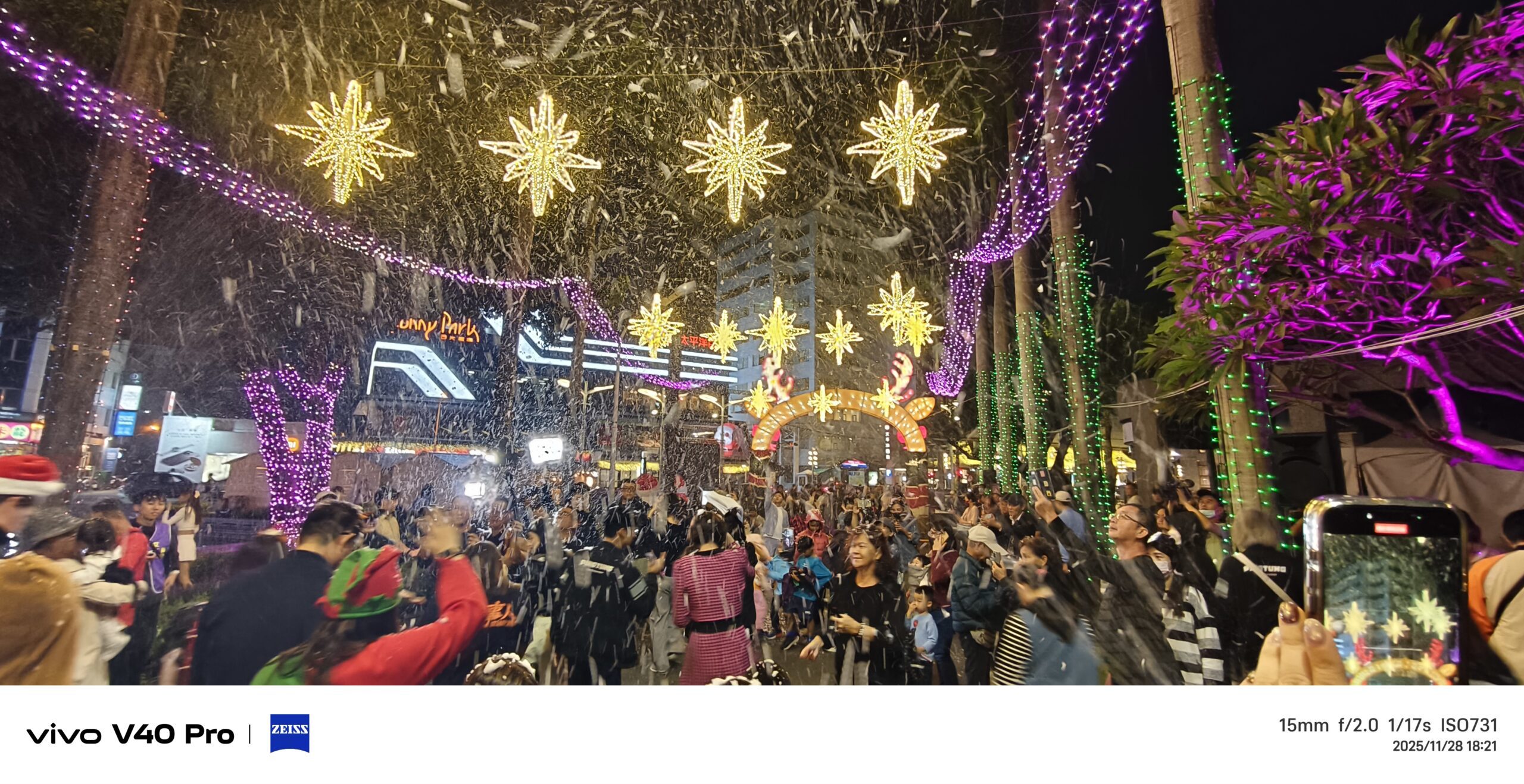 此外,每周假日限定的「浪漫下雪秀」讓民眾在南國看見飄雪奇景,「歡樂遊行派對」則有聖誕老公公不定時派送小禮物,大小朋友都看得笑開懷;服務台每日販售的限定紀念品「聖誕魔法棒」更是吸睛必收,一揮就閃,滿滿童話感。