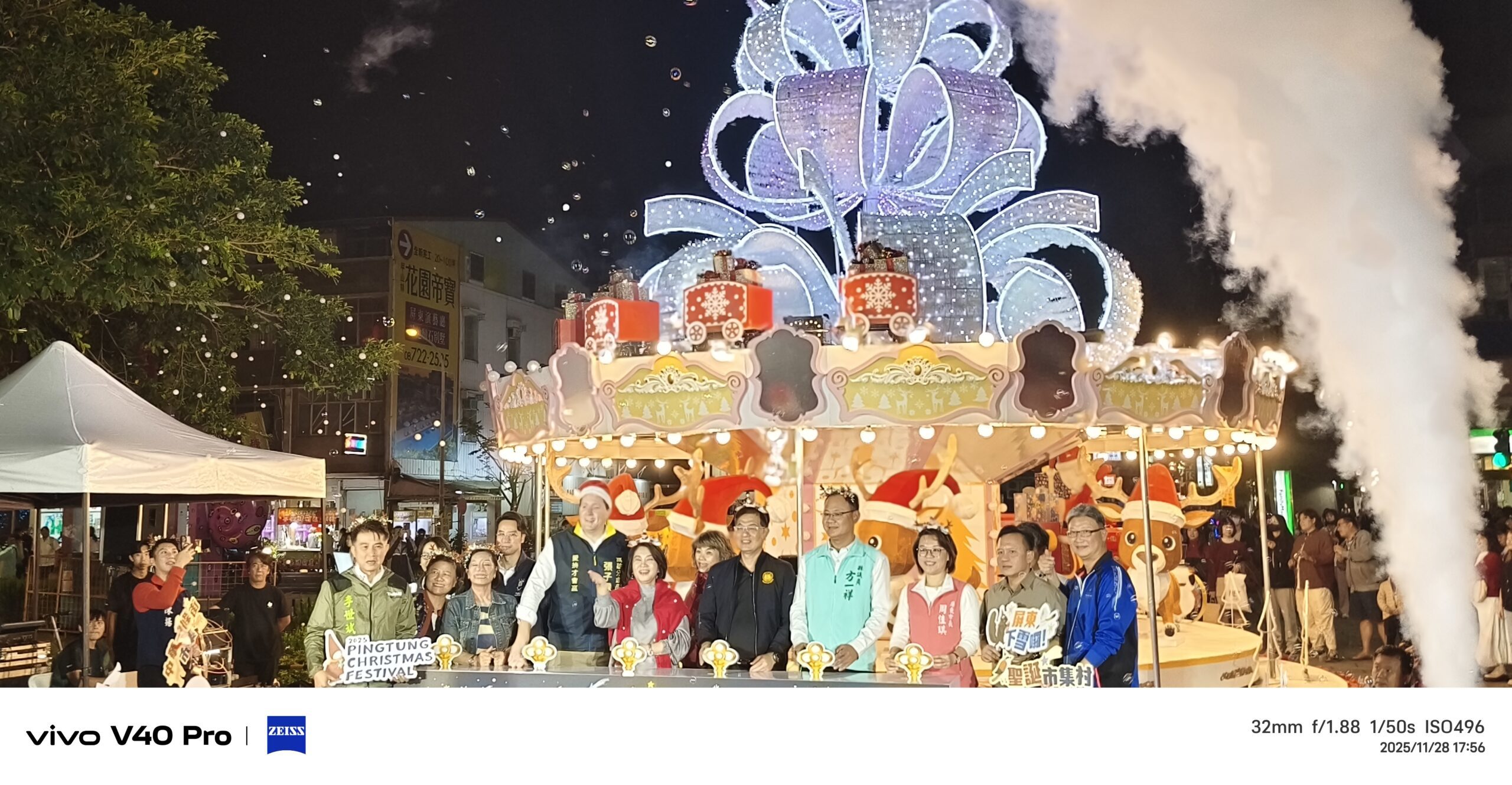 點燈儀式由縣長周春米、美國在台協會及多國駐台代表共同啟動,燈飾伴隨音樂依序亮起,美聲與光影交織掀起陣陣驚呼。來自台南的陳小姐形容「像走進童話世界!」帶著全家前來的王先生也讚嘆園區景色宛如「每一幕都像在拍明信片」,邀民眾把握年末一起感受屏東最迷人的聖誕季。