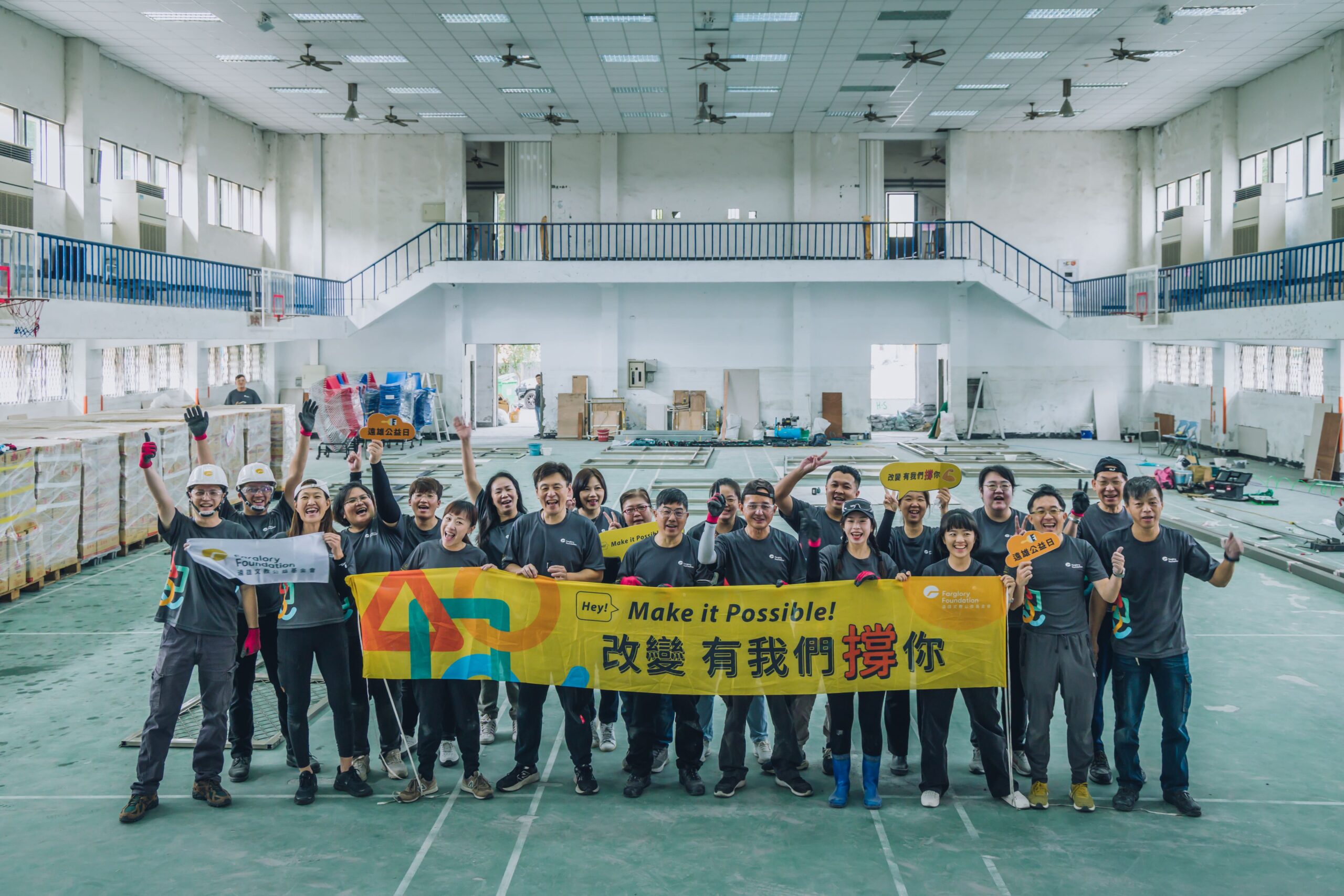 ▲遠雄文教公益基金會,邀請遠雄悅來大飯店、遠雄海洋公園關係企業,共21名企業志工前往花蓮光復國中進行活動中心修繕。(圖/遠雄文教公益基金會)