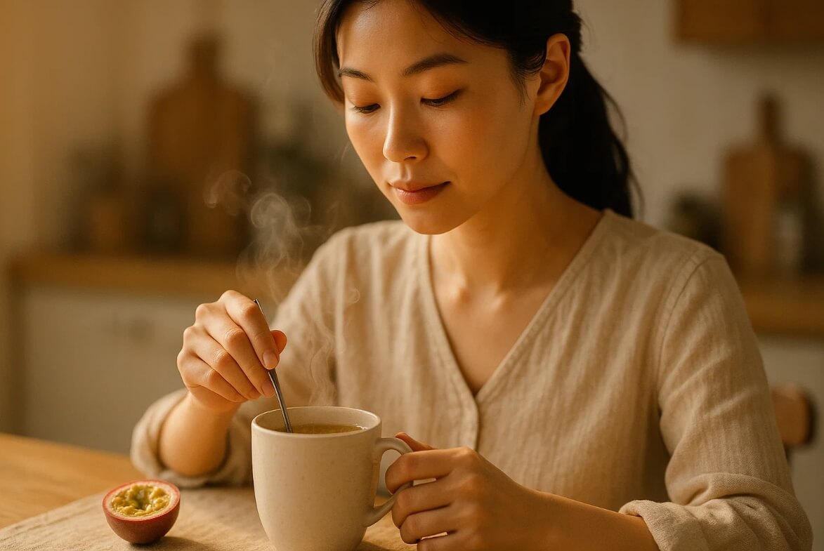 就像在熬湯時放下一片陳皮,不是搶味,而是協調內在的節奏——百香果的這些成分,也是在協助你的神經系統找到溫柔的步調。不過別忘了,每個人的神經敏感度不同,效果會因體質而異,這點要放在心裡喔(註2)。