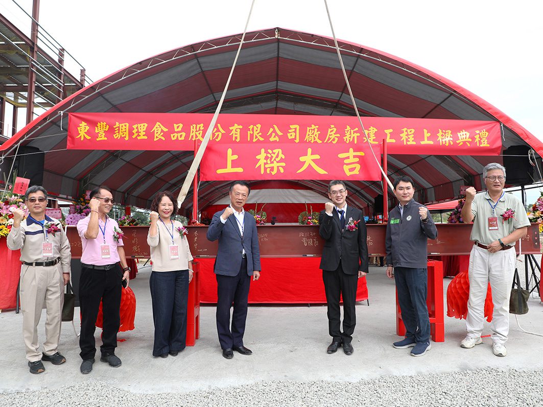 東豐調理食品公司董事長曾建育表示,從選址至今歷經四年的努力,今日的上樑典禮象徵著東豐食品實現夢想的另一重要里程碑。他提到,中埔廠房設立的核心目標,除了提升產品的競爭力,在廠房設計上,依據國際標準規劃,致力於在擴大生產的同時,始終保持卓越的品質。其次,東豐食品希望未來能成為在地創生的推動者,積極與當地特色產品合作,為在地市場提供更廣闊的舞台。