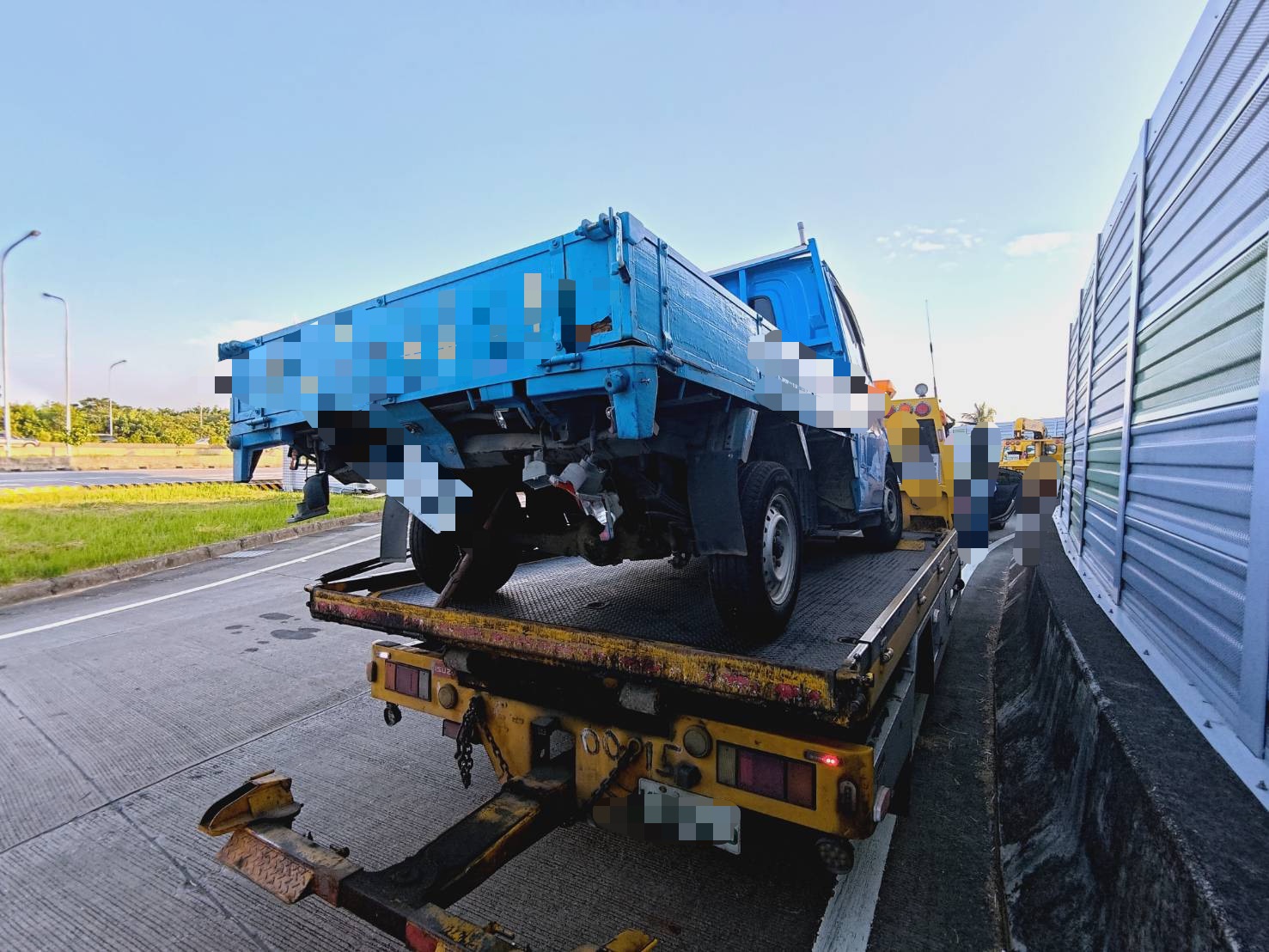警消獲報後火速到場,小貨車駕駛自行脫困,所幸僅受到擦挫傷,邱姓駕駛也無大礙,兩人酒測結果均為零,並無酒駕情形。現場排除作業約進行半小時,至下午4點24分順利恢復通車。