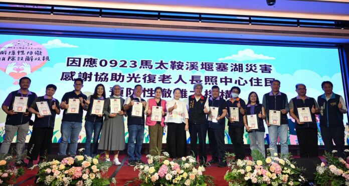 接受表揚的跨專業服務績優人員有8位、傑出身心障礙者2位、協助光復鄉水災撤離作業的有12家老人福利機構以及1家住宿長照機構,徐榛蔚感謝民間夥伴與縣府攜手同心,讓花蓮的社會福利與服務成為全國標竿。她也藉由活動,特別感謝在0923馬太鞍溪堰塞湖洪災中,協助將光復鄉老人長期照顧中心47位住民安全撤離的老人福利機構及長照住宿機構。