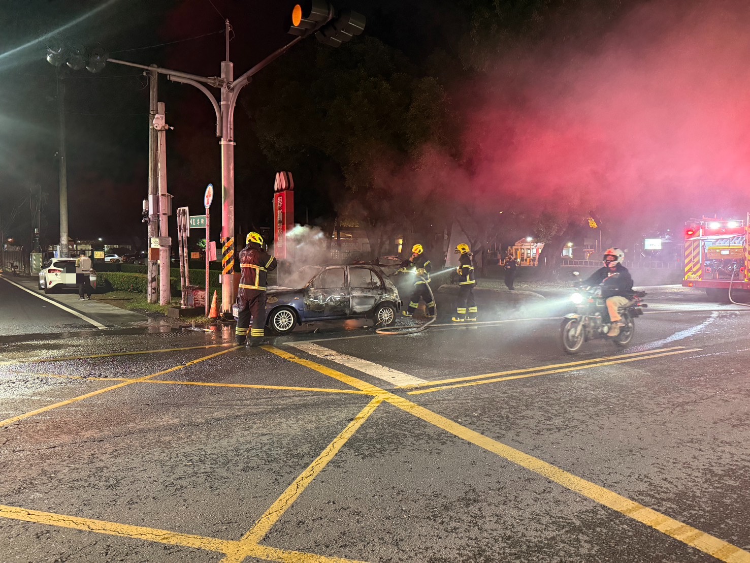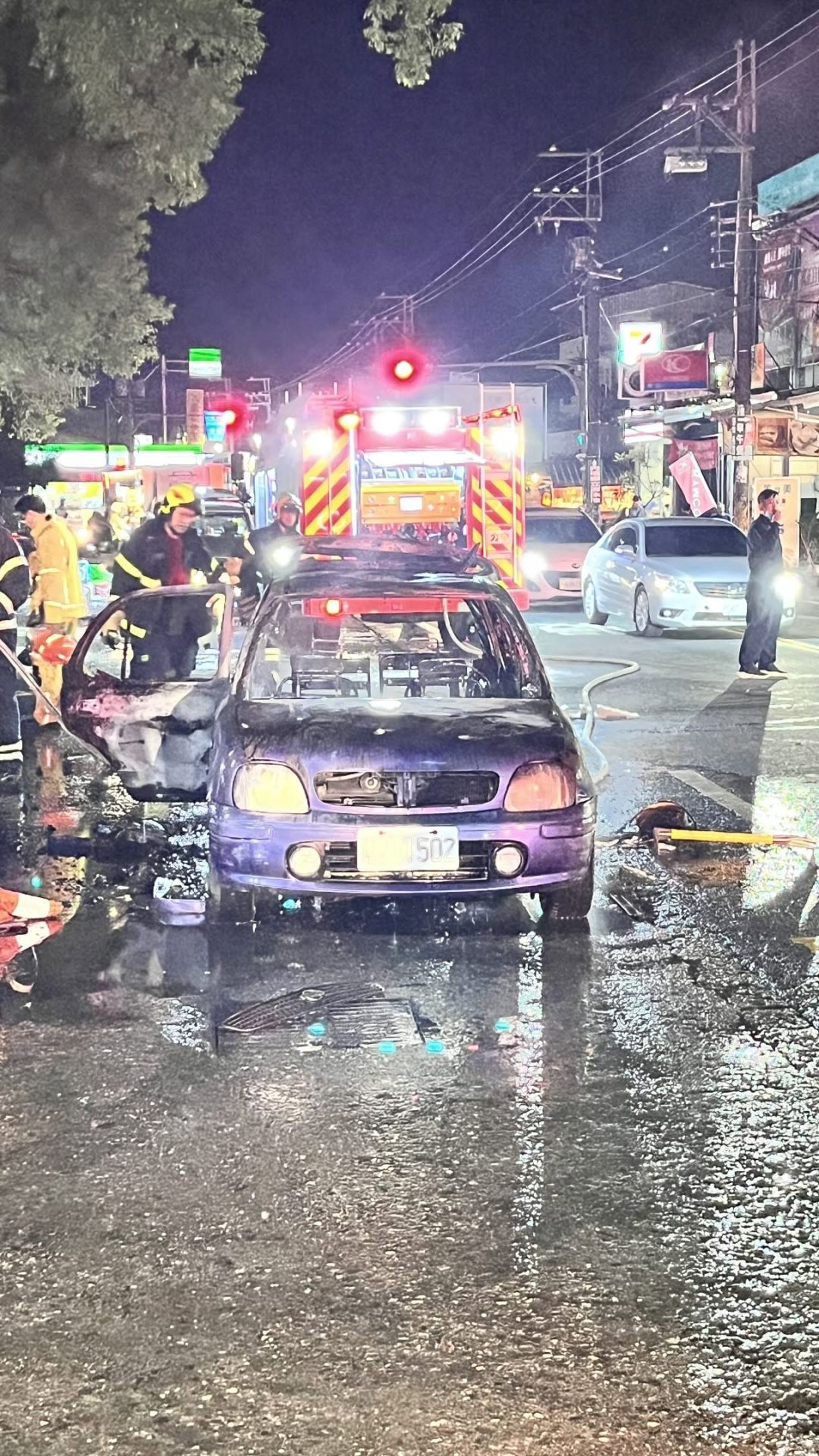 到場發現1輛自小客車全面燃燒。車主向員警表示,當時正準備蒸煮小籠包準備販售,不慎引燃車子。消防人員立即出水灌救,火勢迅速撲滅確無延燒之虞後返隊,詳細起火原因由火調人員調查。