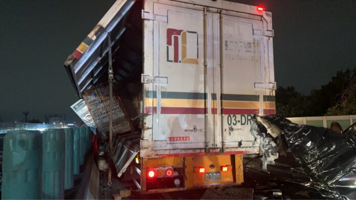 今(4)日凌晨約 1 時 13 分,國道1號南下 170.6 公里(豐原路段)發生一起 聯結車與小客車事故,事故一度 占用全線車道 ,造成後方車流急劇回堵。