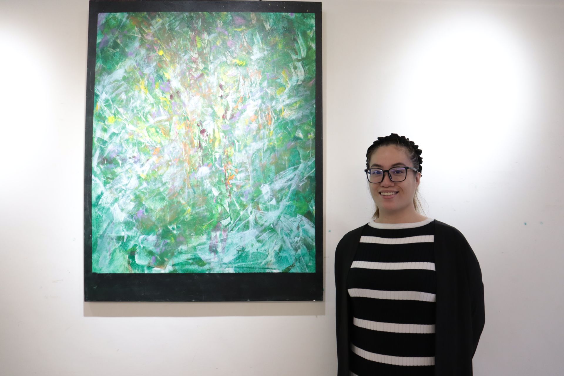 陳怡君的30多幅作品正在彰化醫院藝術走廊展出,獨特的風格讓人不免流連再三,壓克力畫如油畫般立體,線條展現出自由的韻味。她對此表示,壓克力顏料很快就定型,不易修改,她也不會去修改,創作隨心所欲,就像她自己破繭而出一樣,也希望觀眾能感受到其中蘊含的自由味道。