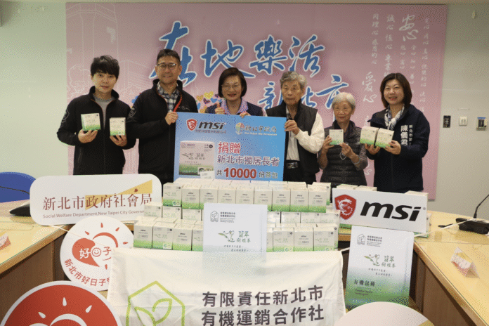 微星科技公司響應新北市好日子愛心大平台,第6年透過市議員陳儀君媒合,捐贈市值約30萬元的翡翠樹蛙茶包1萬份予新北市獨居長輩,由社會局長李美珍代表受贈。微星科技行政服務部經理許志宏表示,邁入超高齡社會,喝茶也是一種陪伴,希望長輩喝好茶、心情好、好健康。