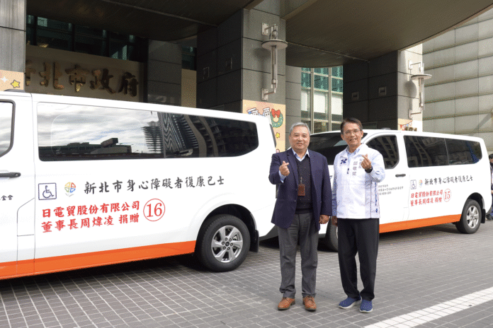 ▲日電貿股份有限公司6年捐14輛復康巴士,副董事長李坤蒼表示,公司將持續在公益的路上,腳步不會停歇。(圖/新北市社會局 提供)
