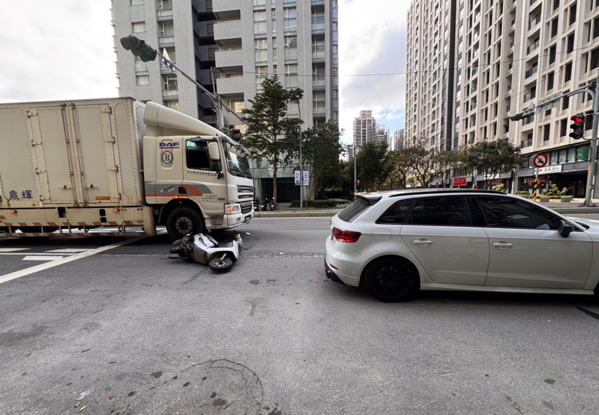 【Lai傳媒、記者爆料網/周庭慶/新北報導】新北市林口區今(5)日發生死亡車禍!中午12時許,1名77歲的鍾姓老婦人騎機車從文化路二段、中山路口地下停車場騎出後,疑因切換車道不慎,與中山路直行中間車道53歲王姓男子駕駛的大貨車發生碰撞,鍾姓婦人被撞倒地且被輾過受困車底。