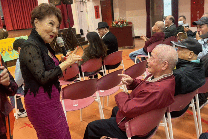 ▲劉明珠(中)演唱鳳飛飛組曲並於台下互動。(圖/新北市社會局 提供)
