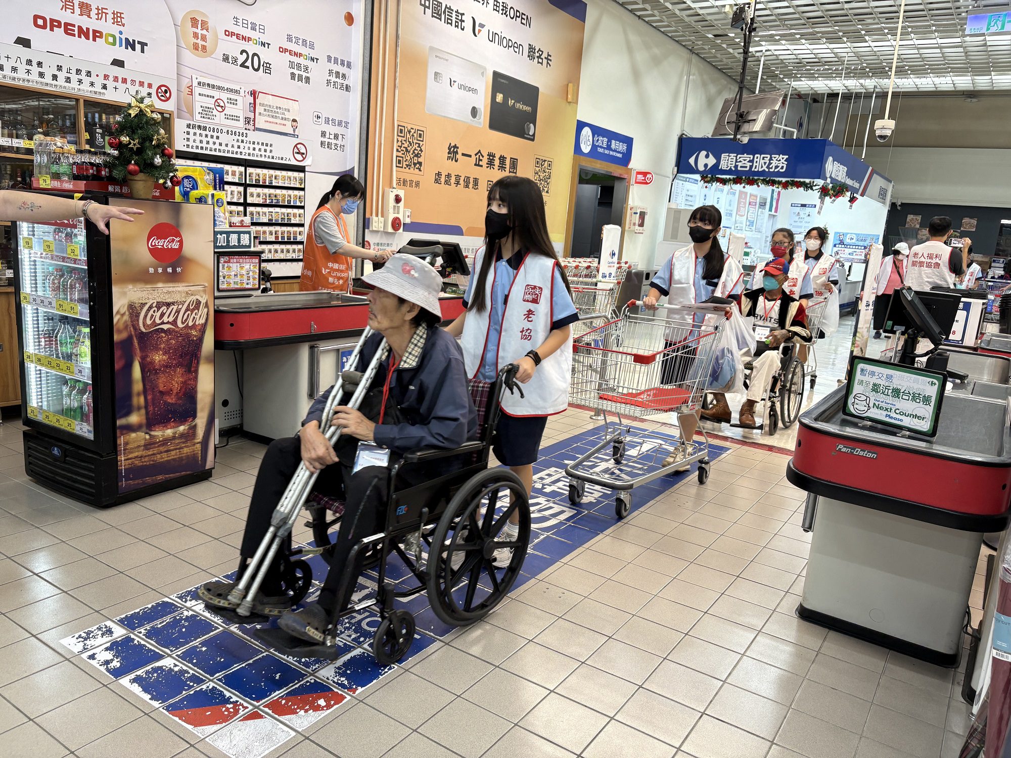 家樂福新屏店也大力支持公益活動,不僅提供場地及必要的協助,還派員工協助學生志工們,確保購物過程能順利進行。店內的工作人員也熱情參與,為阿公阿嬤們提供了額外的幫助,讓整個活動充滿了溫馨的氛圍。家樂福新屏店經理表示,我們非常支持這樣的社會公益活動,希望能夠為社區做出貢獻,也讓更多人關注老年人的需求。