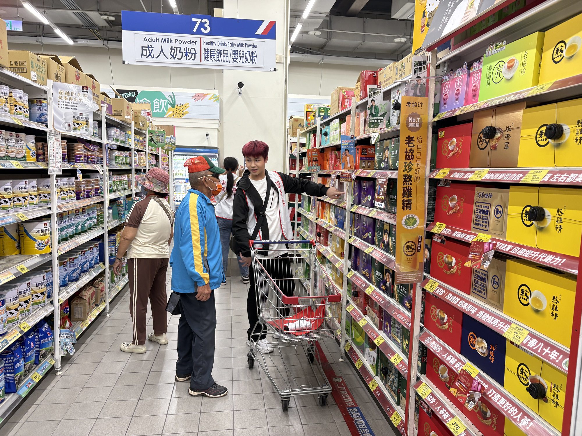 學生採分組陪伴讓長輩們開始購物之旅,主動詢問阿公阿嬤需要購買的物品、耐心陪伴他們挑選。活動中還設計了許多互動環節。學生不僅要詢問長輩的需求,還要主動分享自己的學校生活、興趣及愛好。長輩們對於這樣的互動很感興趣,還頻頻詢問學生在學校的情況,甚至是對新科技、新產品產生濃厚的興趣。學生還特別注意阿公阿嬤的身體狀況,確保他們在購物時的安全與舒適。有的學生主動幫助阿公阿嬤挑選合適的商品,還有的學生在阿公阿嬤疲憊時,主動提出休息的建議,讓整個活動充滿了關懷與溫暖。這種細心的照顧讓長輩們倍感欣慰及溫馨。