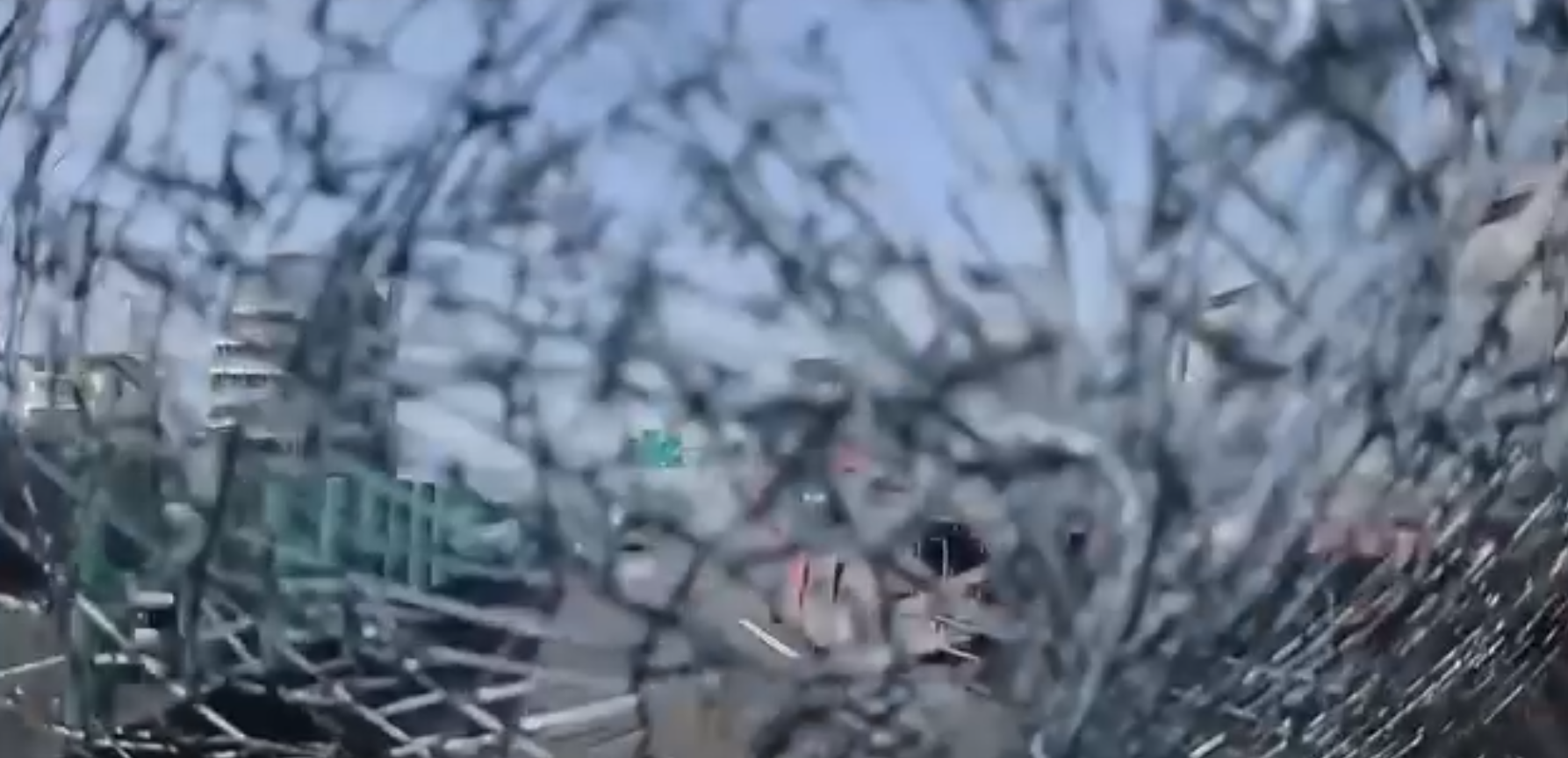 【Lai傳媒、記者爆料網/周庭慶/高雄報導】民眾PO網一段影片,內容是昨(5)日上午9時許駕車行經台88快速道路,前方1輛拖板車上突有1塊鐵片飛落擊中車子擋風玻璃造成碎裂,民眾還PO出一張照片並表示為這件意嚇到去收驚!