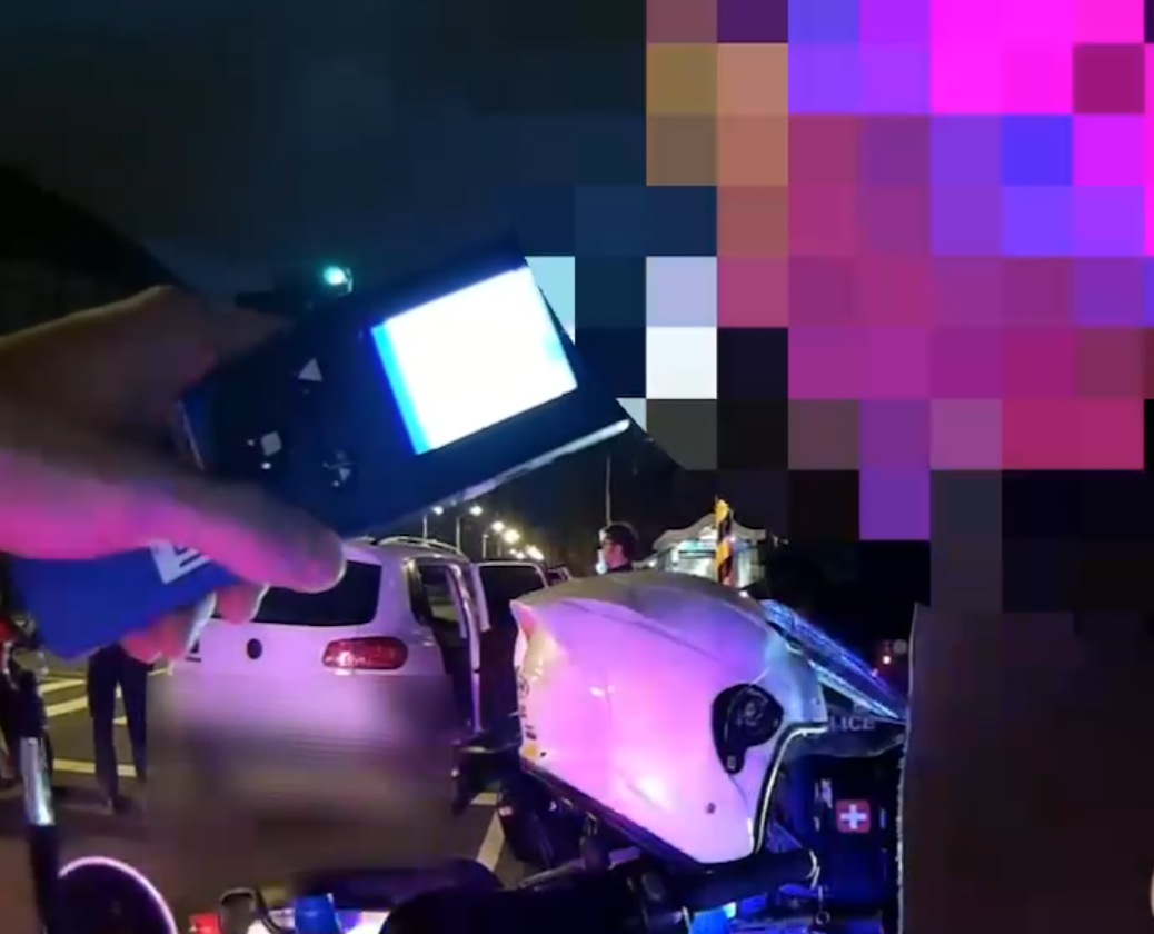 酒駕車接受吹氣酒精濃度測試。翻攝畫面