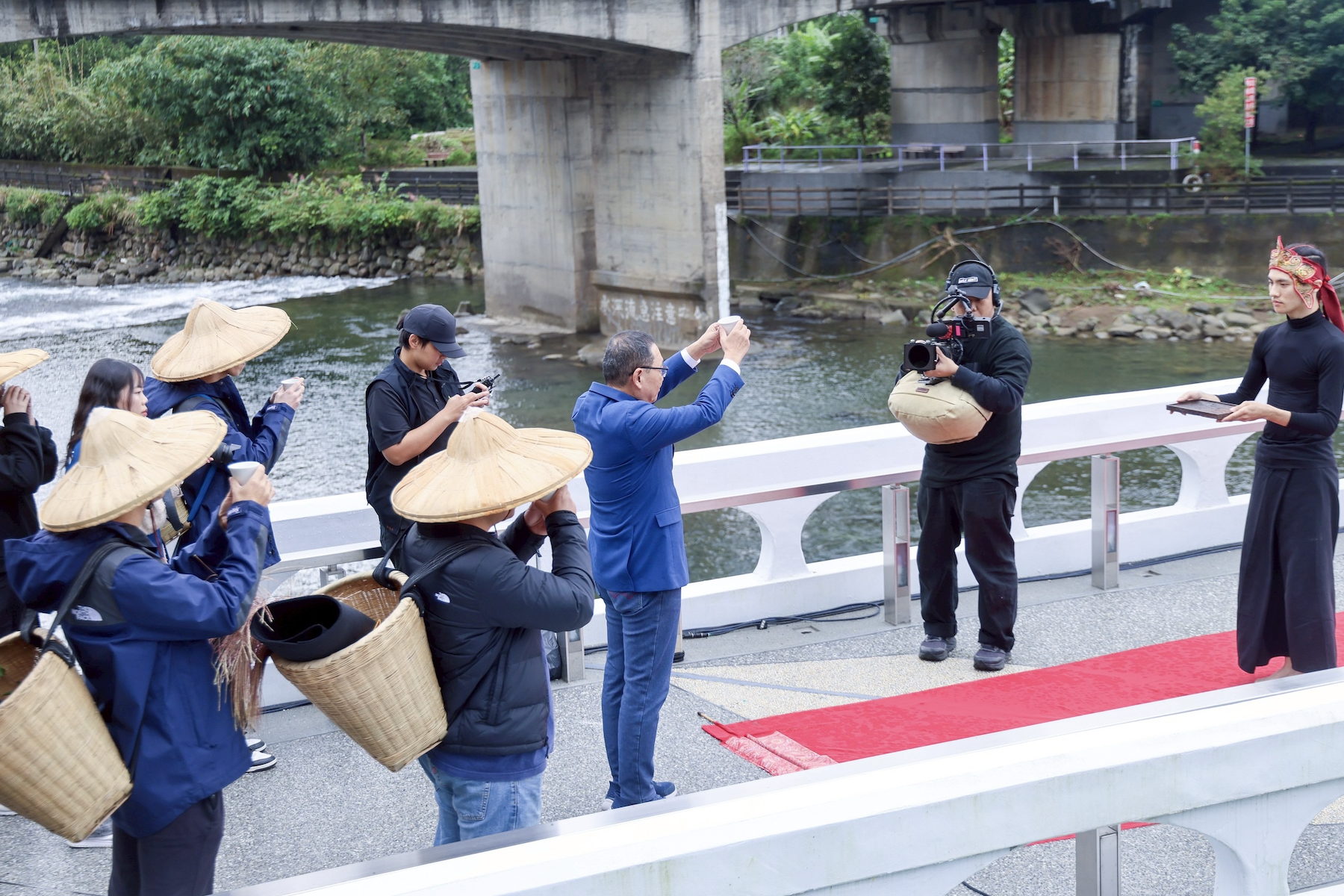 新北市定古蹟「坪林尾橋」修復工程今(114)年9月竣工,新北市政府(6)日舉辦啟用典禮,國際知名「無垢舞蹈劇場」以「為百年尾橋獻香奉茶」為主題進行祈福演出,新北市長侯友宜代表接受舞者奉上的象徵祝福與傳承的茶湯,獻上對山林大地最誠摯的敬意,並與在地居民共同見證百年歷史風華再現。