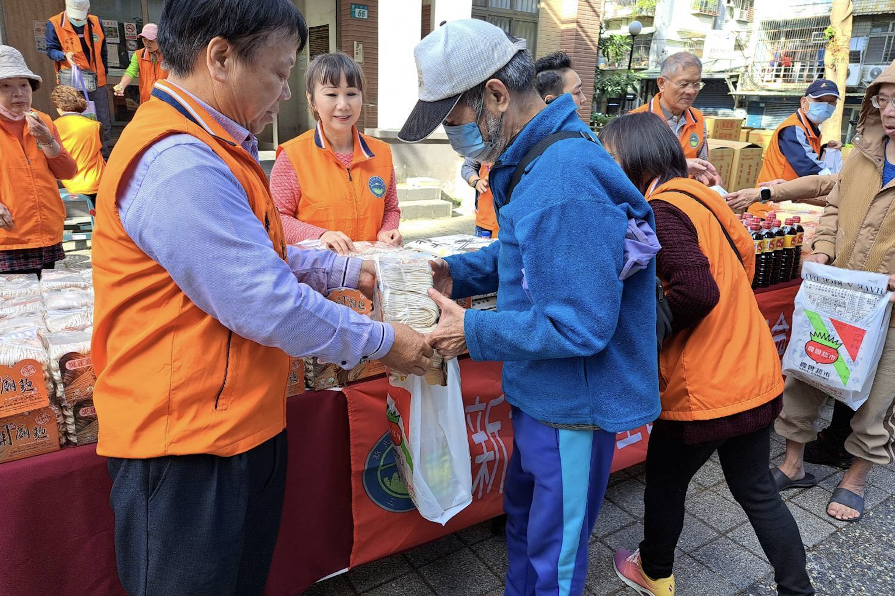 ▲新北市社會局副局長許秀能和福安里長施正通到場向同鄉會的善舉加油鼓勵。(圖/新北市社會局 提供)