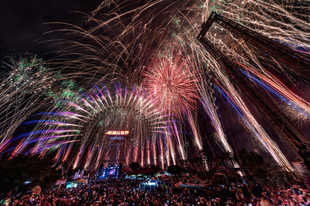 所有煙火角度皆經過精密試算,只有親臨園區的人才能看到「煙火 × 雷射 × 摩天輪」三重環繞的震撼畫面,帶領遊客從 2025 一路 High 到 2026。