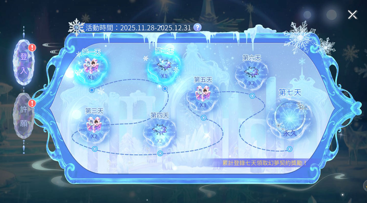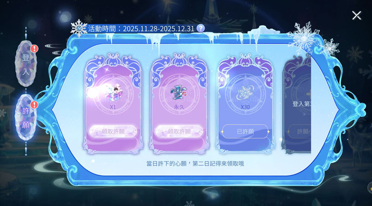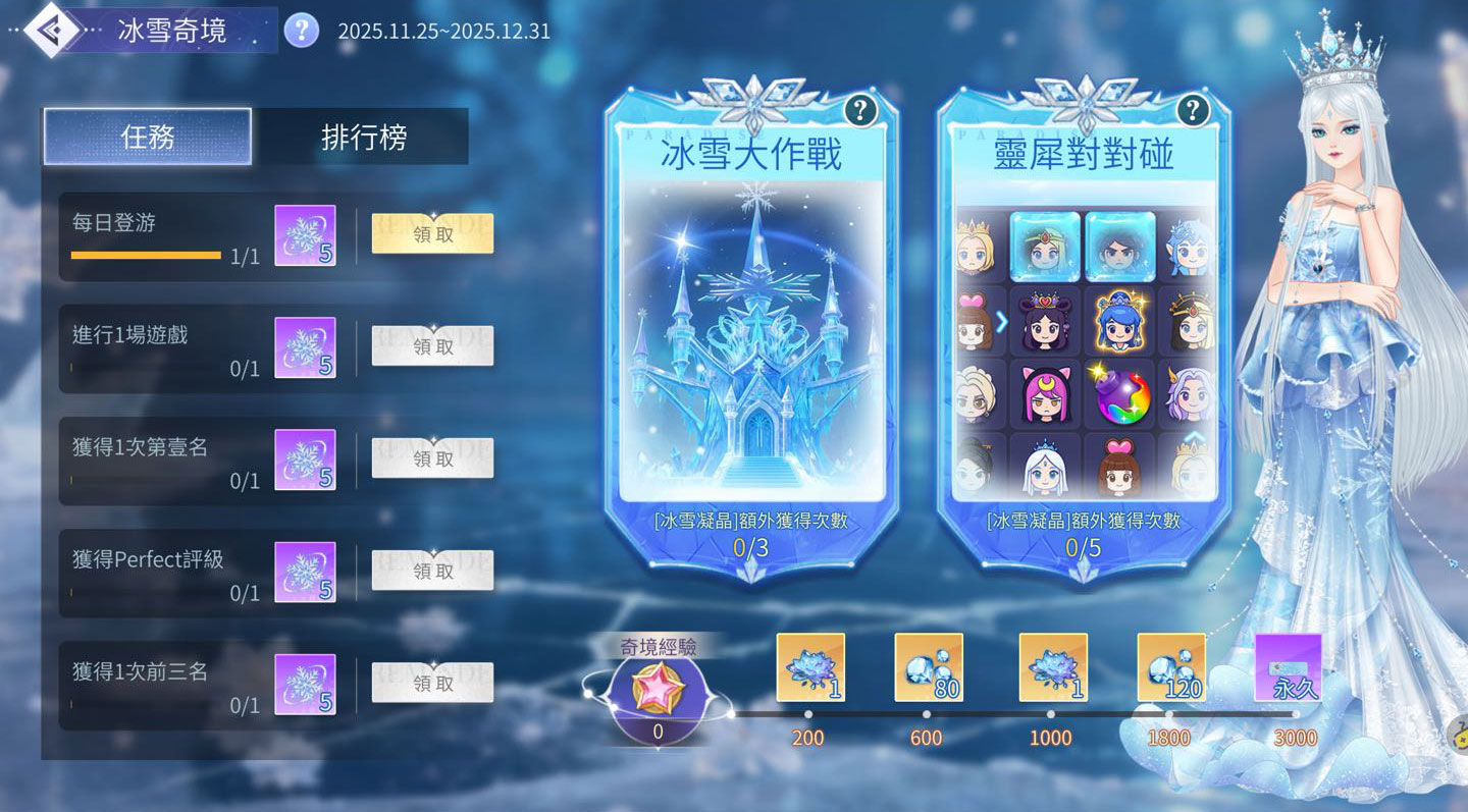 只要完成指定挑戰,就能啟動水晶能量,逐步解鎖專屬獎勵與冰雪秘寶。