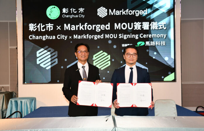「彰化無人載具聯盟主席」–彰化市長林世賢,8日與全球工業級 3D 列印領導廠商美商 Markforged Markforged 大中華區總經理陳中欣簽署合作備忘錄(MOU),並宣布由 陳中欣擔任無人載具聯盟的榮譽副主席。林世賢表示,將結合分散式數位鍛造與無人載具產業,帶動傳產升級,打造彰化成為台灣無人載具與先進製造新基地。